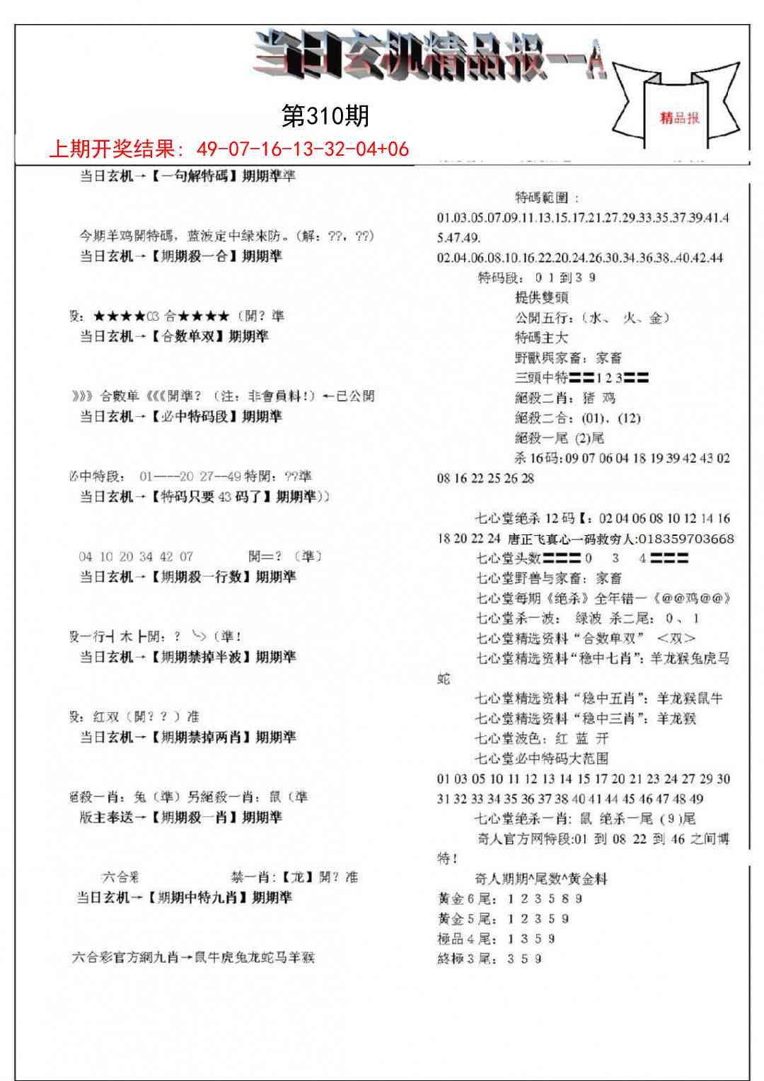 当日玄机精品报A
